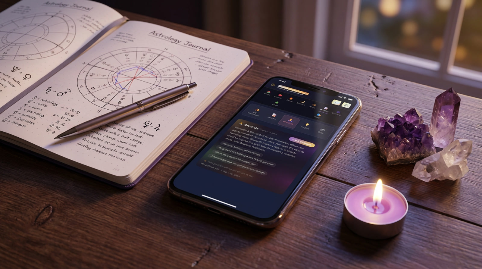 Cosmic awareness enriches journaling. When you know the moon phase and your current transit, your reflections gain depth and context.